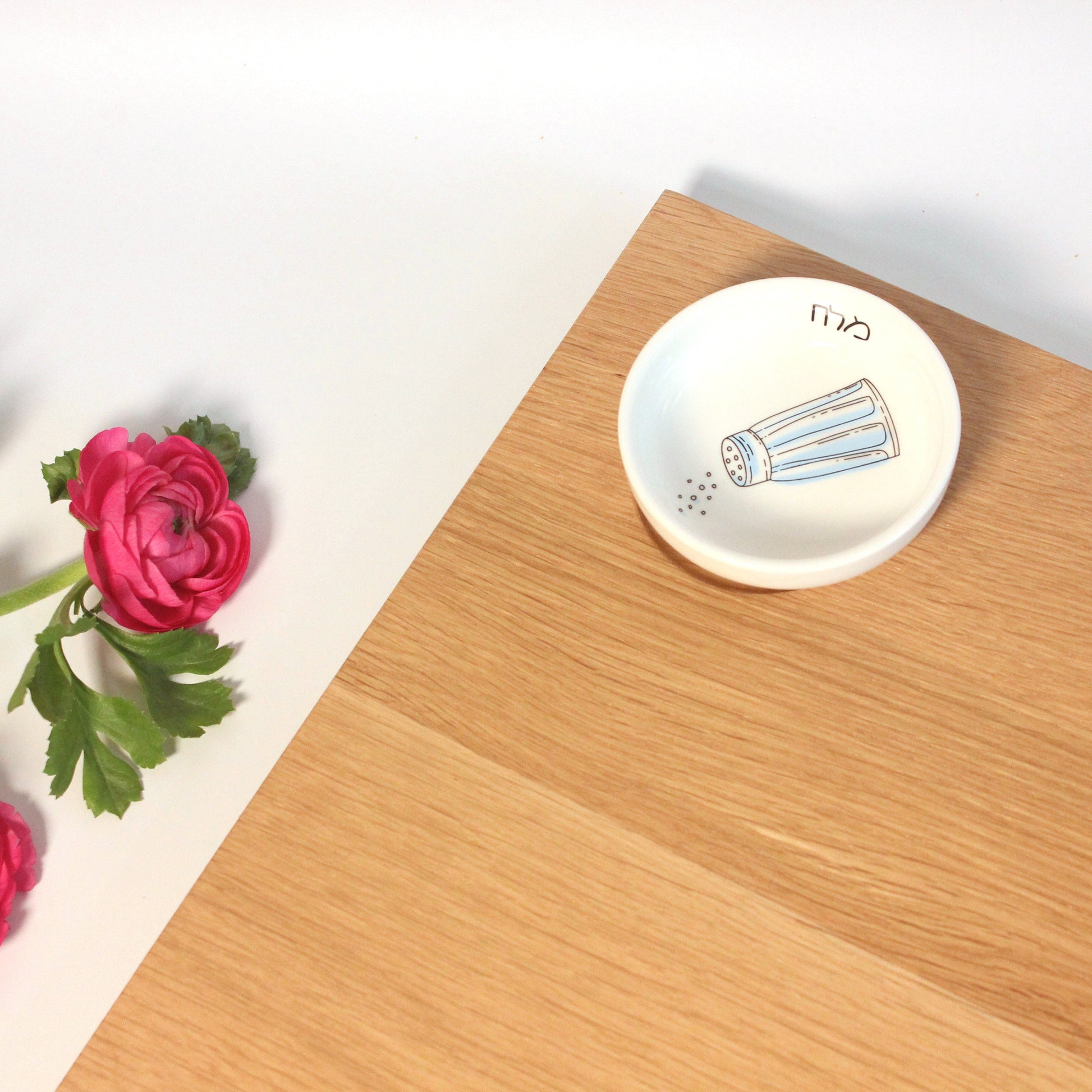 Includes a beautifully illustrated porcelain bowl for salt or honey—ideal for Rosh Hashanah and beyond.
